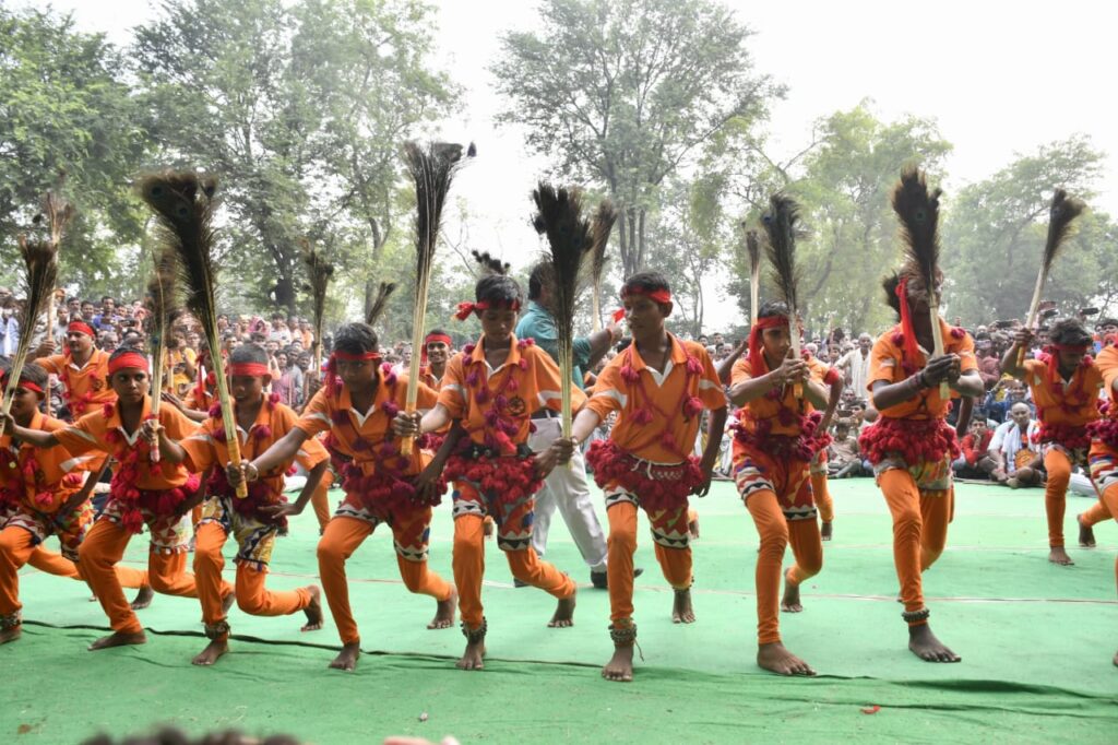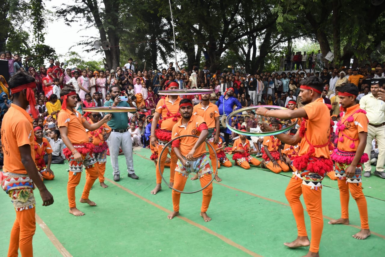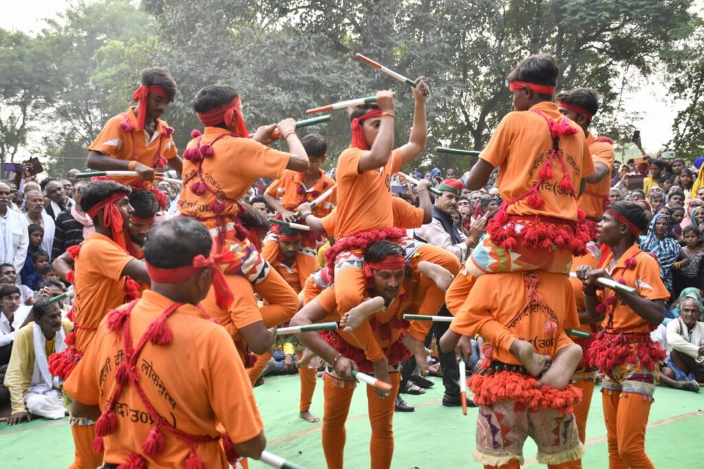 रंग बिरंगी वेशभूषा में कलाकारों ने किया दिवारी का प्रर्दशन