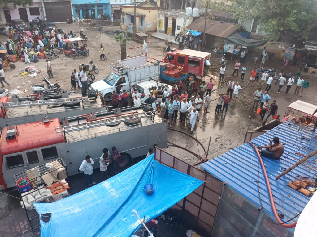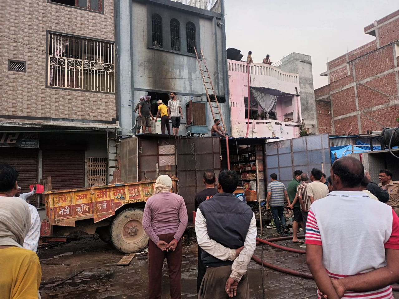 हमीरपुर। मुख्यालय के सुभाष बाजार में बुधवार की देर रात शॉर्ट सर्किट की वजह से किराने के थोक व्यापारी की बिल्डिंग में आग भड़क उठी। बिल्डिंग के एक तरफ थोक किराना और दूसरी तरफ रेडीमेड की दुकान और गोदाम है। आग इस कदर फैली कि पहली और दूसरी मंजिल में रखा किराना-मसाला और कपड़े जलकर खाक हो गए। साढ़े चार घंटे की मशक्कत के बाद फायरब्रिगेड की टीम ने आग पर काबू पाया। आग से करीब दो करोड़ रुपए के नुकसान की संभावना जताई गई है। मुख्यालय के सुभाष बाजार के सब्जी मंडी मैदान में रामकिशोर एंड सन्स की बहुत पुरानी किराने की दुकान है। तीन खंड की इस दुकान में नीचे के खंड में सब्जी मंडी की तरफ किराना और दूसरी तरफ मनीष गॉरमेंटस के नाम से रेडीमेड की दुकान है। मनीष गॉरमेंटस का फर्स्ट फ्लोर में भी रेडीमेड कपड़े का शोरुम है। किराने की दुकान दोनों भाई सोनू और मोनू गुप्ता चलाते हैं। किराना दुकान के ऊपर के दोनों फ्लोर में गोदाम है। जिसमें किराना, मसाला, रिफाइंड, घी आदि सामान रखा रहता है।