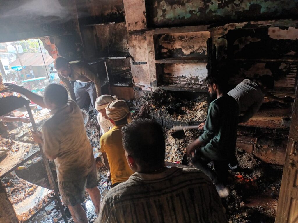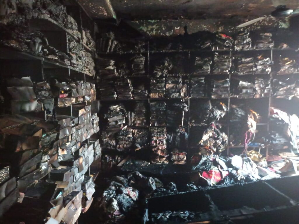 शार्ट सर्किट की चिनगारी बनी ज्वाला,गारमेंट शाप “राख”